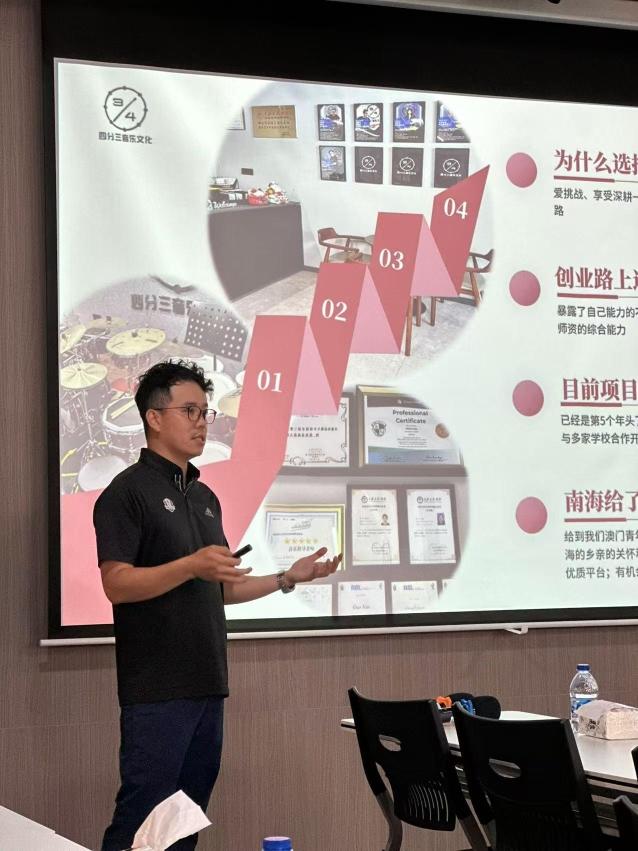 郭炽涛的音乐工作室位于佛山市南海区,开业初期,郭炽涛面临着诸多挑战。首先是场地租赁和装修问题,他通过“南海·青创家”项目的帮助,获得了创业指导和政策咨询服务,顺利解决了问题。接下来是招生问题。郭炽涛通过社交媒体和线下活动进行宣传,逐渐积累了第一批学员。为了提高教学质量,他还聘请了大湾区内经验丰富的爵士鼓老师,共同打造了一个专业的教学团队。随着口碑的传播,工作室的学员数量逐渐增加,涵盖了从初学者到专业爵士鼓手的各个层次。