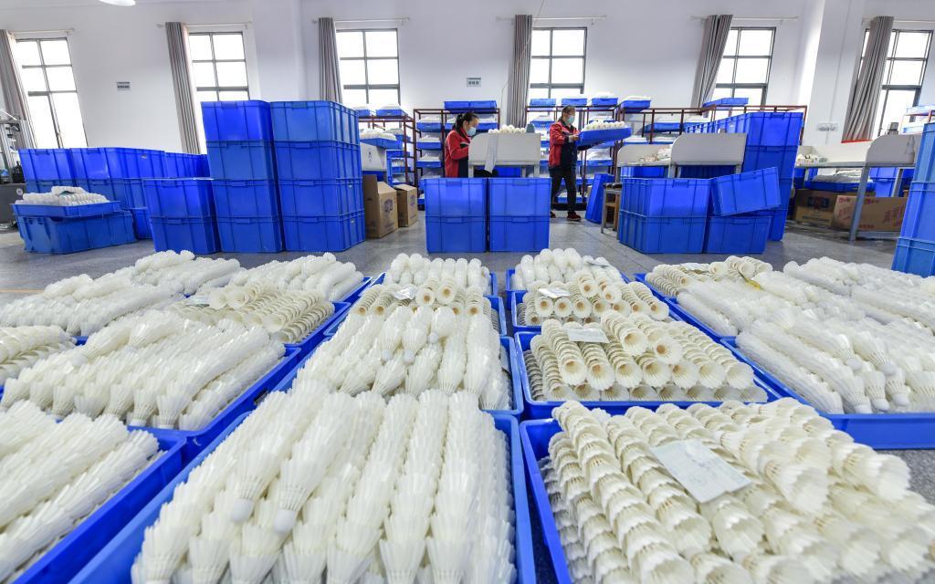 在贵州大桐利体育用品有限公司生产车间,110多名工人正在操作全新的生产设备赶制订单。“羽毛球运动持续火热,我们厂房面积由原来的7000平方米,扩大到了现在的2万平方米。”公司负责人张伟平说,公司主要生产高端羽毛球,80%的产品用于出口,主要销往马来西亚、泰国、英国等国家和地区。
