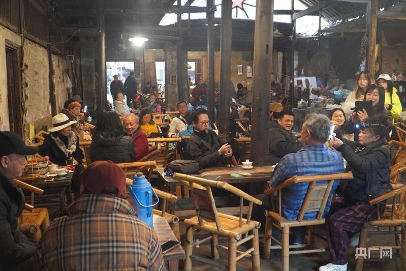 在老茶馆喝茶休闲的茶客们(央广网记者 昌思荣 摄)