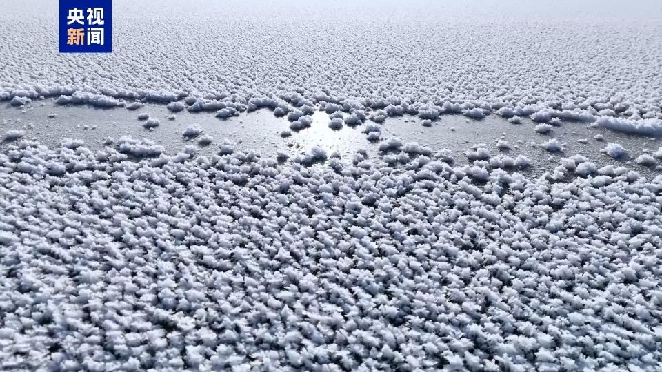 随着气温不断降低,这几天,新疆巴州博斯腾湖的冰面上出现了“冰花”奇观。