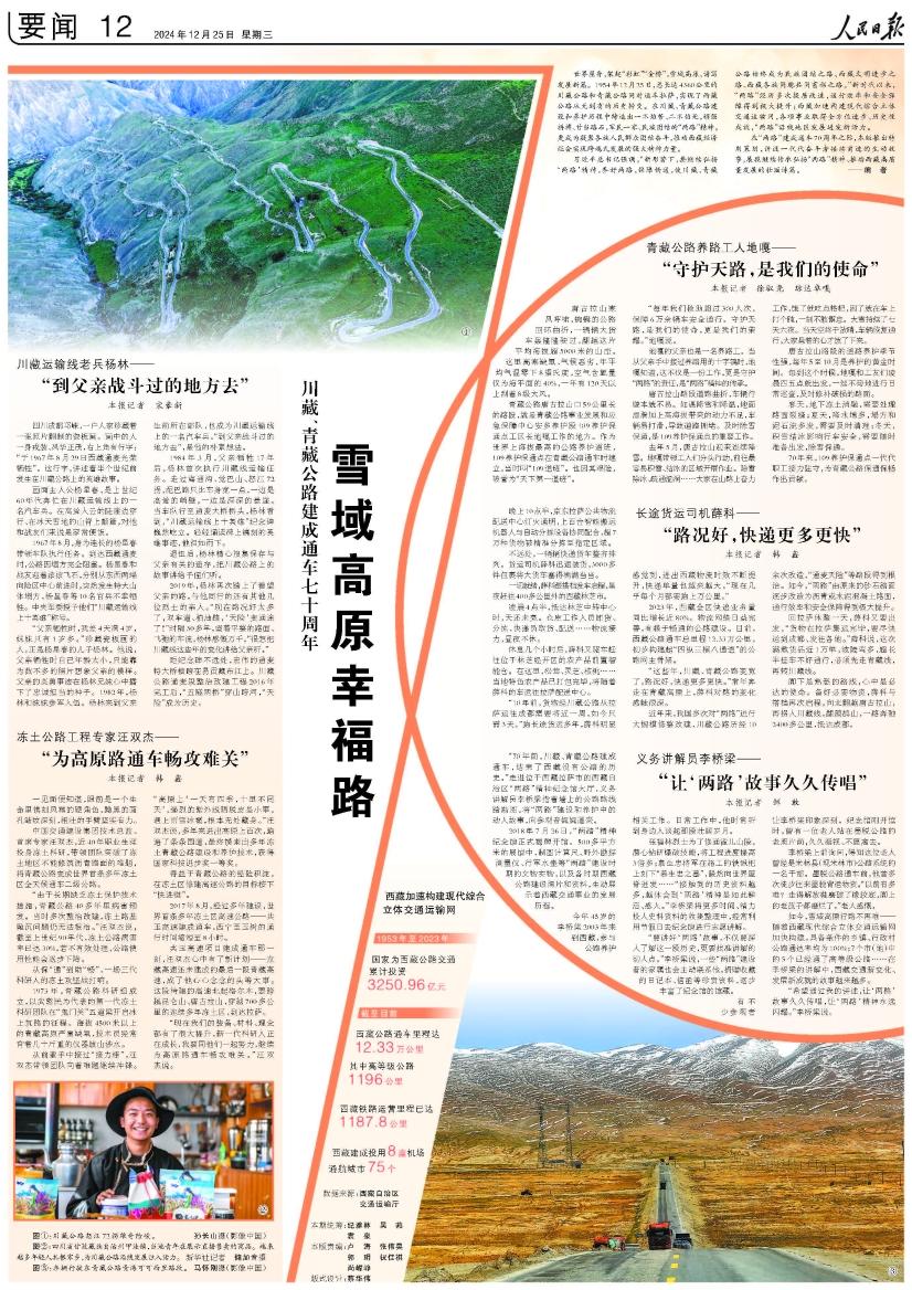 在“两路”建成通车70周年之际,本版推出特别策划,讲述一代代奋斗者接续前进的生动故事,展现继续传承弘扬“两路”精神、推动西藏高质量发展的壮丽诗篇。