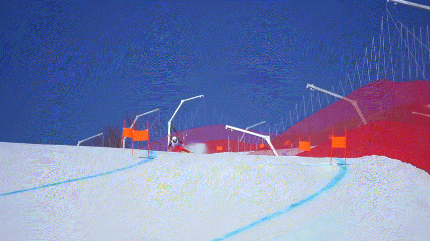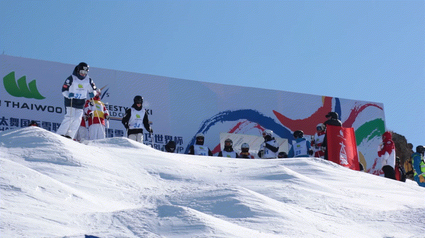 滑雪者在冰雪覆盖的山峦之间穿梭