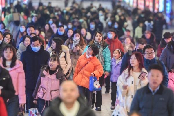 1月26日,在武汉汉口火车站,旅客在春运首日出行。