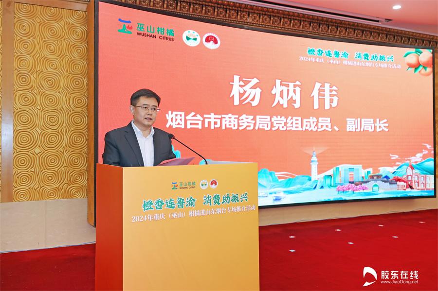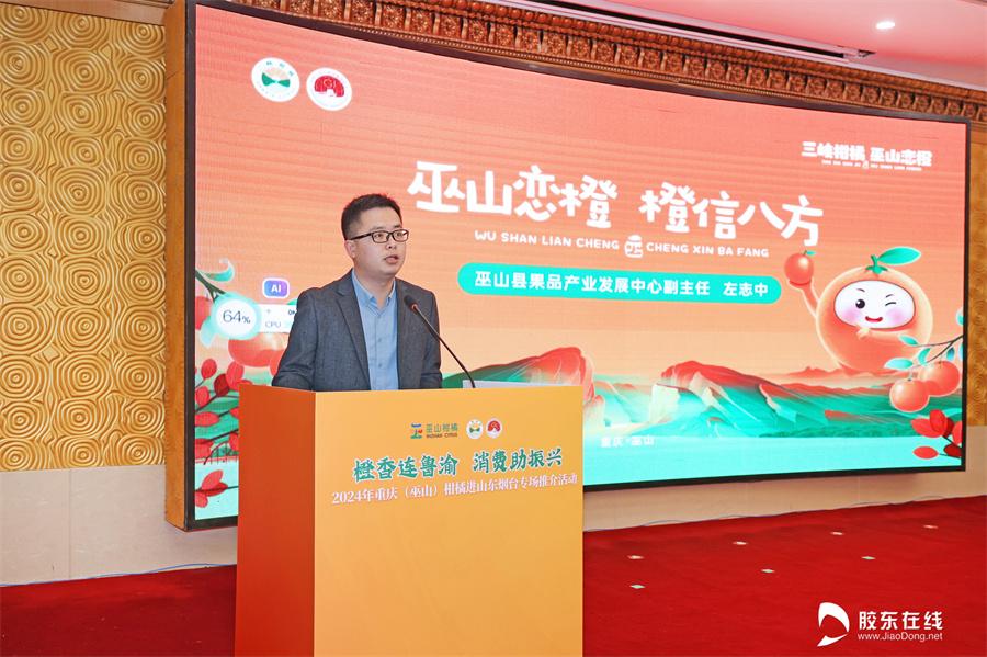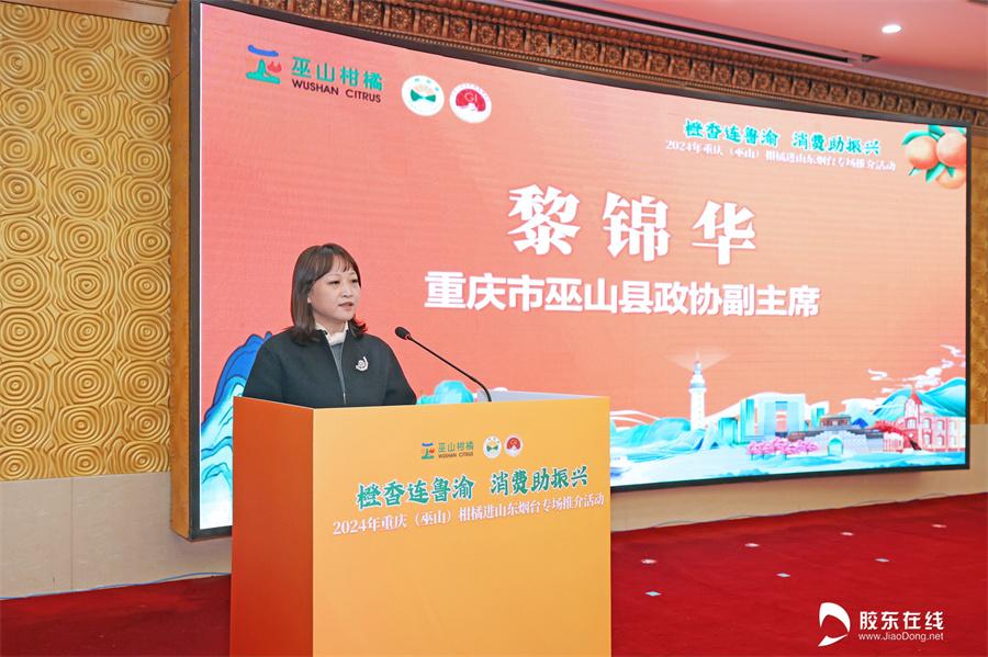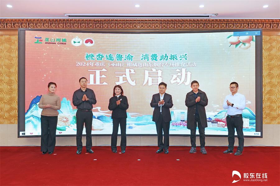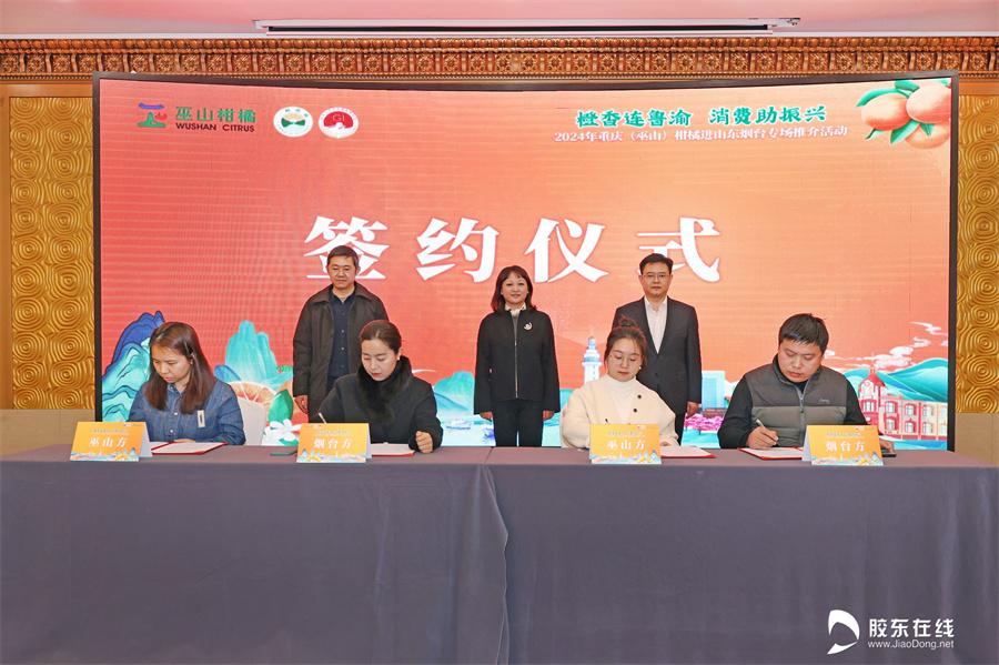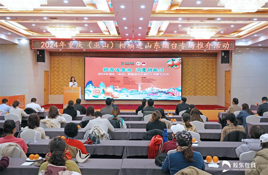 胶东在线12月27日讯 橙香连鲁渝,消费助振兴。12月27日,2024年重庆(巫山)柑橘进山东烟台专场推介活动在烟台市芝罘区碧海大厦酒店成功举行。活动现场,“三峡柑橘·巫山恋橙”来到“仙境海岸·品重烟台”,进行了产品推介、签约仪式、试吃品鉴等多样的互动活动,进一步提升了巫山特色农产品在山东烟台的影响力。