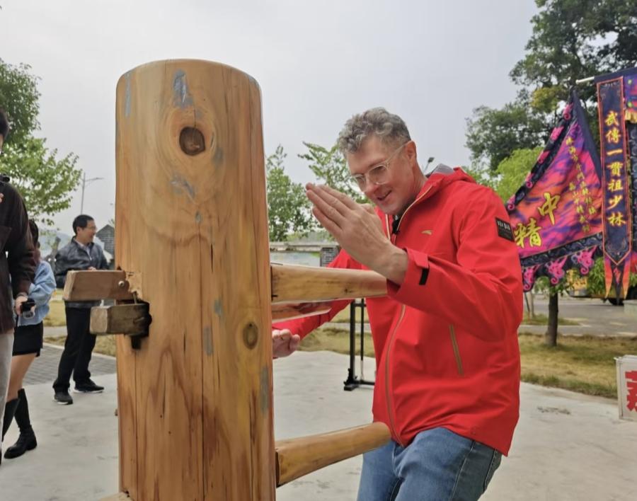 看完佛家拳师父的示范,英国网红博主李·巴雷特主动上前体验,“我知道广东民间习武之风由来已久。今天我跟着当地的师父学习了中国传统武术拳法斗门佛家拳。师父展示的拳法一招一式攻防有序、形神俱备,也很灵活多变。”在李·巴雷特看来,打拳不仅是一种身体锻炼,更是一种心灵修行,可以让人在刚柔并济的拳法中找到内心的宁静和力量。