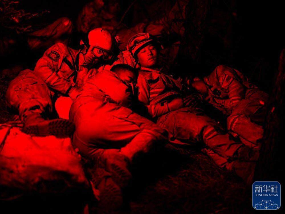 凌晨1点,风最弱的时候,唐天钧和贺奎带人兵分两路上山打火。消防员吉胡布铁被水枪误射到眼睛,啥也看不到了,过了好久才恢复光感。这一夜,大家衣服湿了干,干了又湿,一直奋战到天亮明火熄灭,才拖着疲惫的身躯下山。