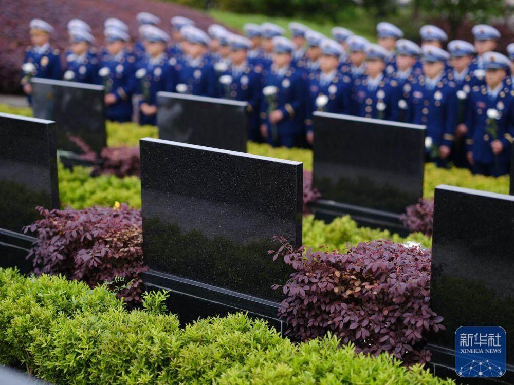 清明节前夕,四川省森林消防总队特勤大队在成都市烈士陵园缅怀长眠在这里的革命先烈和救火勇士(4月3日摄)。