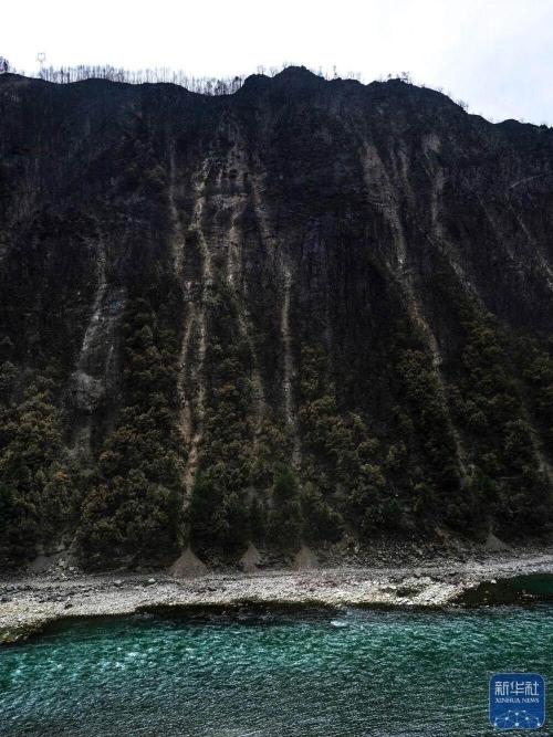 雅江县雅砻江畔扑灭大火后的山林(3月25日摄)。
