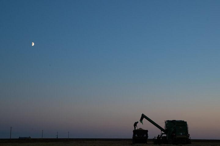 2024年10月11日,在位于黑龙江省鹤岗市绥滨县的北大荒集团普阳农场有限公司作业区,种植户驾驶农机进行收割作业。新华社记者 张涛 摄
