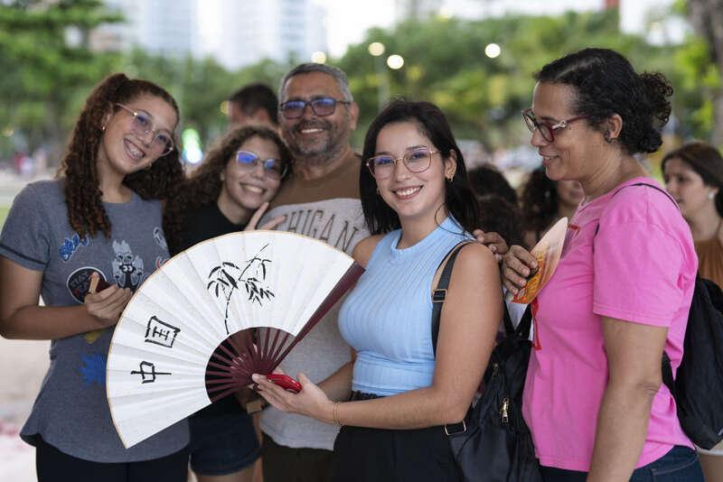 2月3日,一名女子在巴西累西腓举行的中国春节庆祝活动上展示自己书写的扇面。这是中国春节成为累西腓市官方节日后的第二次新春活动。