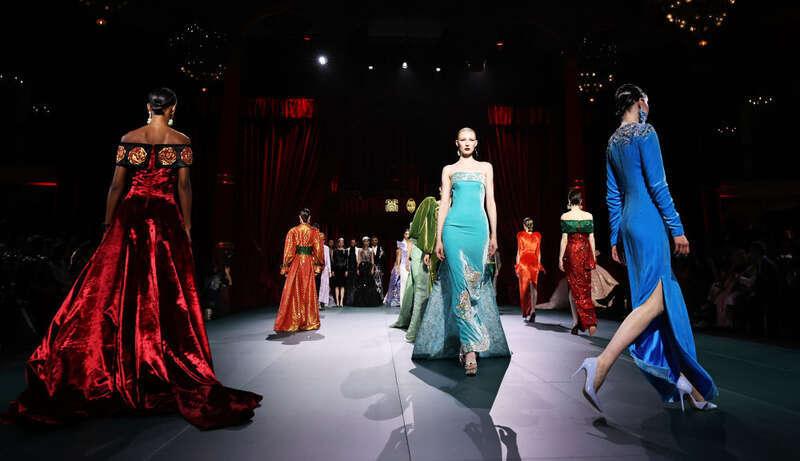 9月28日,模特在法国巴黎举行的“恭王府服饰秀”上展示服装。聚焦中式审美和传统工艺的“恭王府服饰秀”共展示48套服饰,按春夏秋冬划为4个章节轮番展示,融合苗绣、锡绣、云锦等传统工艺与恭王府传统文化元素。