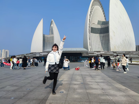 越南网红博主阮氏清清在珠海大剧院前拍照留念 摄影 傅细明