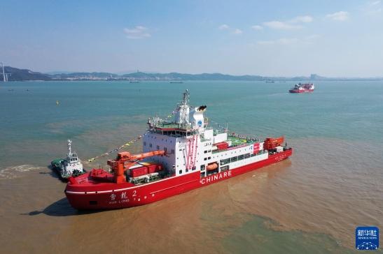 2024年11月1日,执行中国第41次南极考察任务的“雪龙”号和“雪龙2”号船从广州南沙国际邮轮母港码头出发。新华社记者 黄国保 摄