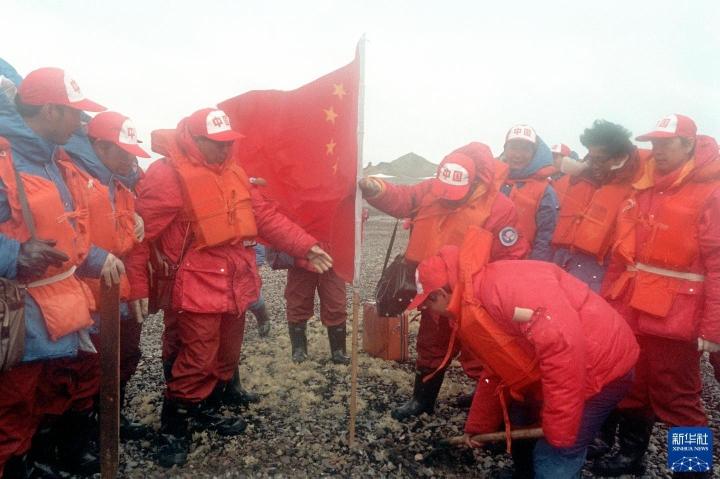 1984年12月30日,中国南极考察队登陆成功后,在南极洲插上第一面五星红旗。新华社记者 朱幼棣 摄