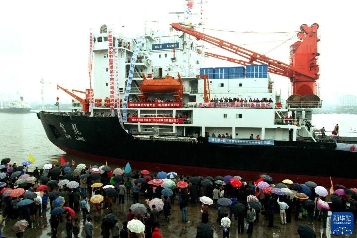 1997年11月15日,“雪龙”号载着100多名考察队员从上海启航,前往南极进行第14次科学考察活动,同时为我国设在南极的“长城”、“中山”两个科学考察站运送补充物资。新华社记者 张刘仁 摄