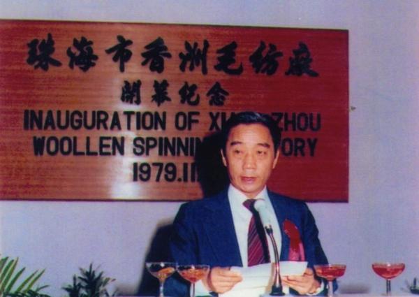 1979年,曹光彪在珠海市香洲毛纺厂投产仪式上发言。