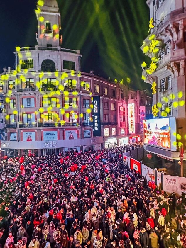 人们在天津金街上共同迎接2025新年到来 和平区融媒体中心供图