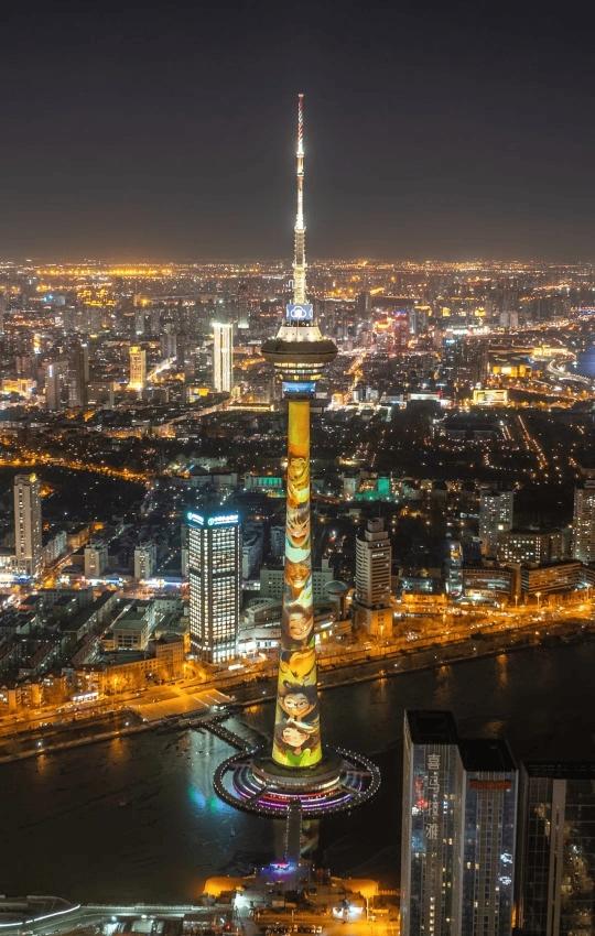 天塔裸眼3D光影秀迎新年 河西区委宣传部供图
