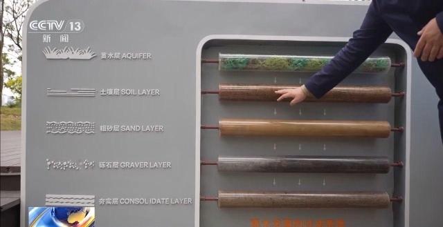 总台央视记者 王晨:这个雨水花园其实就是一个超级大海绵,它的主要结构层分为植被蓄水层、土壤层、粗砂层、砾石层和夯实的土层。这五层结构从粗到细,对雨水进行过滤,变成清澈的涓涓细流。