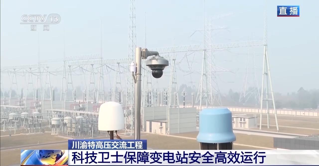 铜梁变电站又是如何实现高效安全运行的?这就要介绍一下变电站里的几个安全卫士。鹰眼摄像头可以实现360度的全景监控并进行快速细节捕捉,旁边还有蓝色的“哨兵”,是无人机探测设备,可全方位探测3公里范围内的无人机信号并对其进行处置,为变电站建立起一道“空中屏障”。