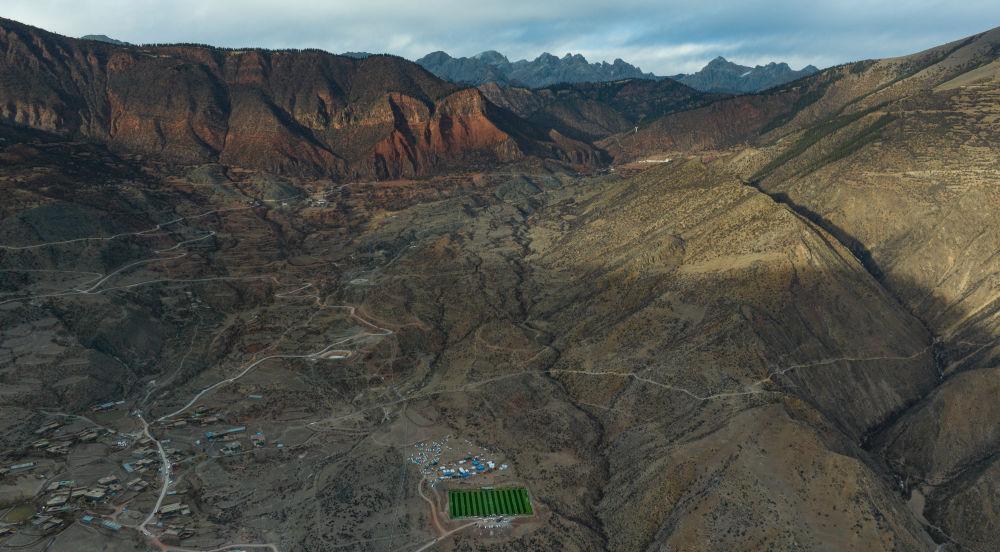 马利镇“云中球场”坐落于红褐色的山谷中(1月2日摄,无人机照片)。新华社记者 丁增尼达 摄