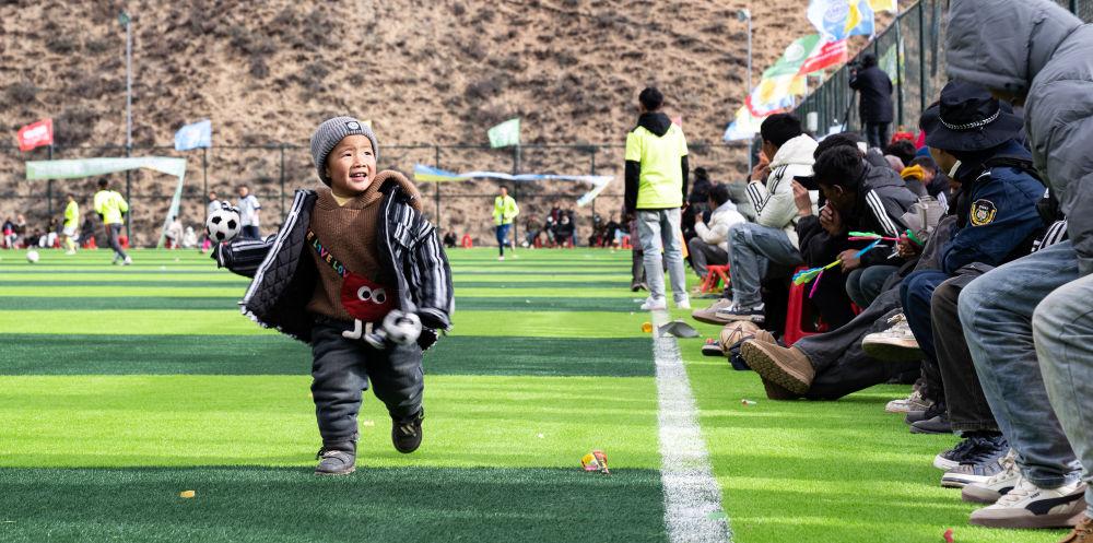 在马利镇“云中球场”,小球迷们在加油助威(1月2日摄)。新华社记者 丁增尼达 摄