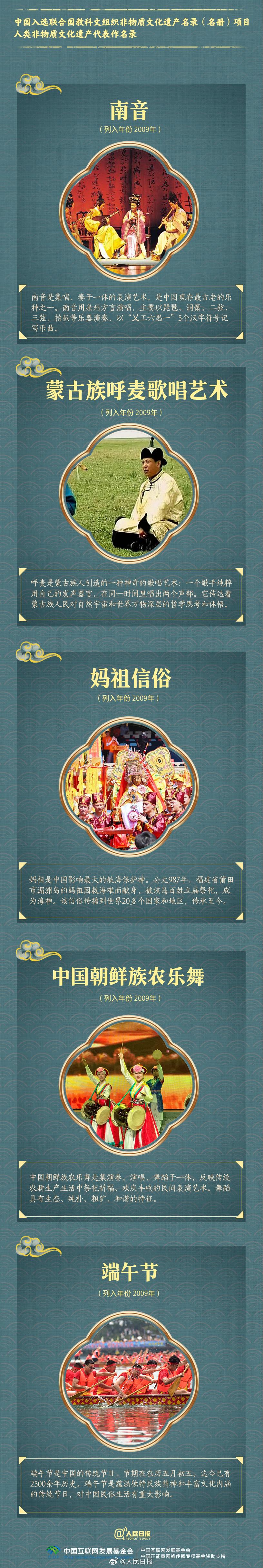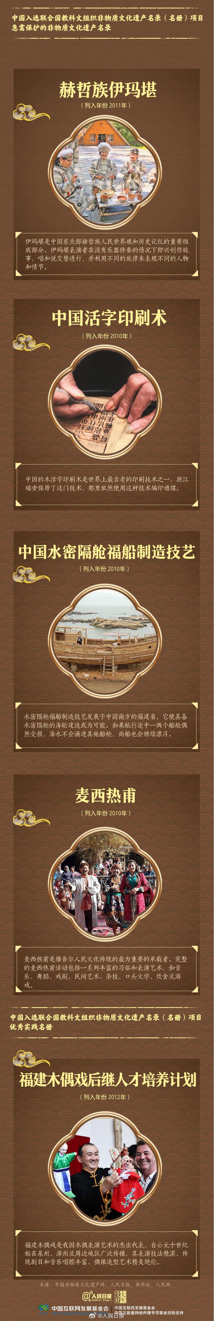 截至目前,我国共44个项目列入联合国教科文组织非物质文化遗产名录、名册,总数位居世界第一。