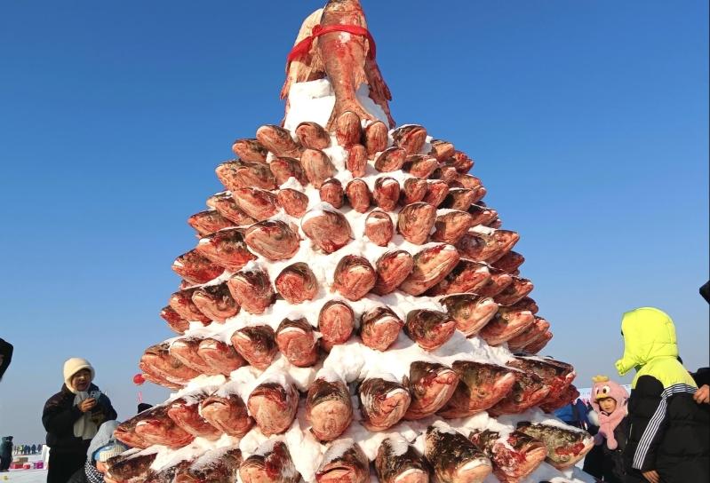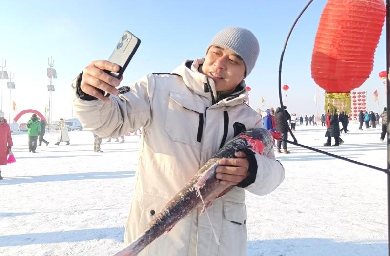 冬捕文化节中,最壮观当属起网时刻,在机器绞盘的作用下,渔网缓缓拉出冰面,网内各种大小鱼类热气腾腾、泛着鳞光,两侧游客纷纷拿出手机拍照,还有游客挑选心仪的鱼装袋购买。