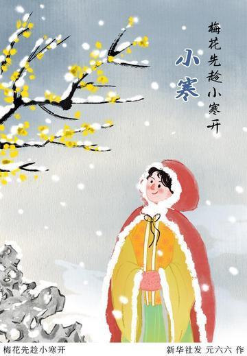 此时节,北国四野苍茫,千里冰封;南方多地寒意刺骨。元代文人吴澄编著的《月令七十二候集解》中说:“十二月节,月初寒尚小,故云。月半则大矣。”意为小寒时节天气寒冷,但未至最寒,到大寒时节,寒冷才会达到极致。