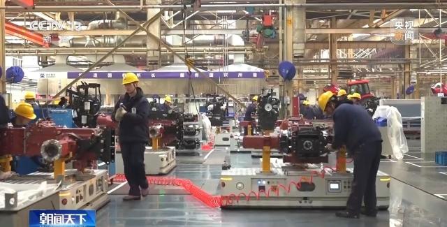 总台央视记者 张琪:这条生产线上,150秒就能下线一台200马力的大型拖拉机,一天就能生产200台大型拖拉机。这样的生产力,得益于我目光所及的智能生产系统。