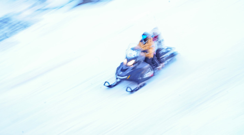 2024年12月24日,游客在长白山北景区乘坐雪地摩托。颜麟蕴 摄