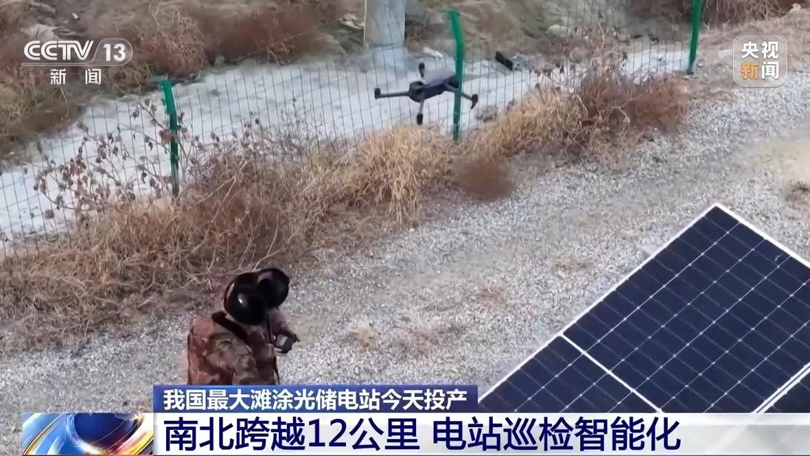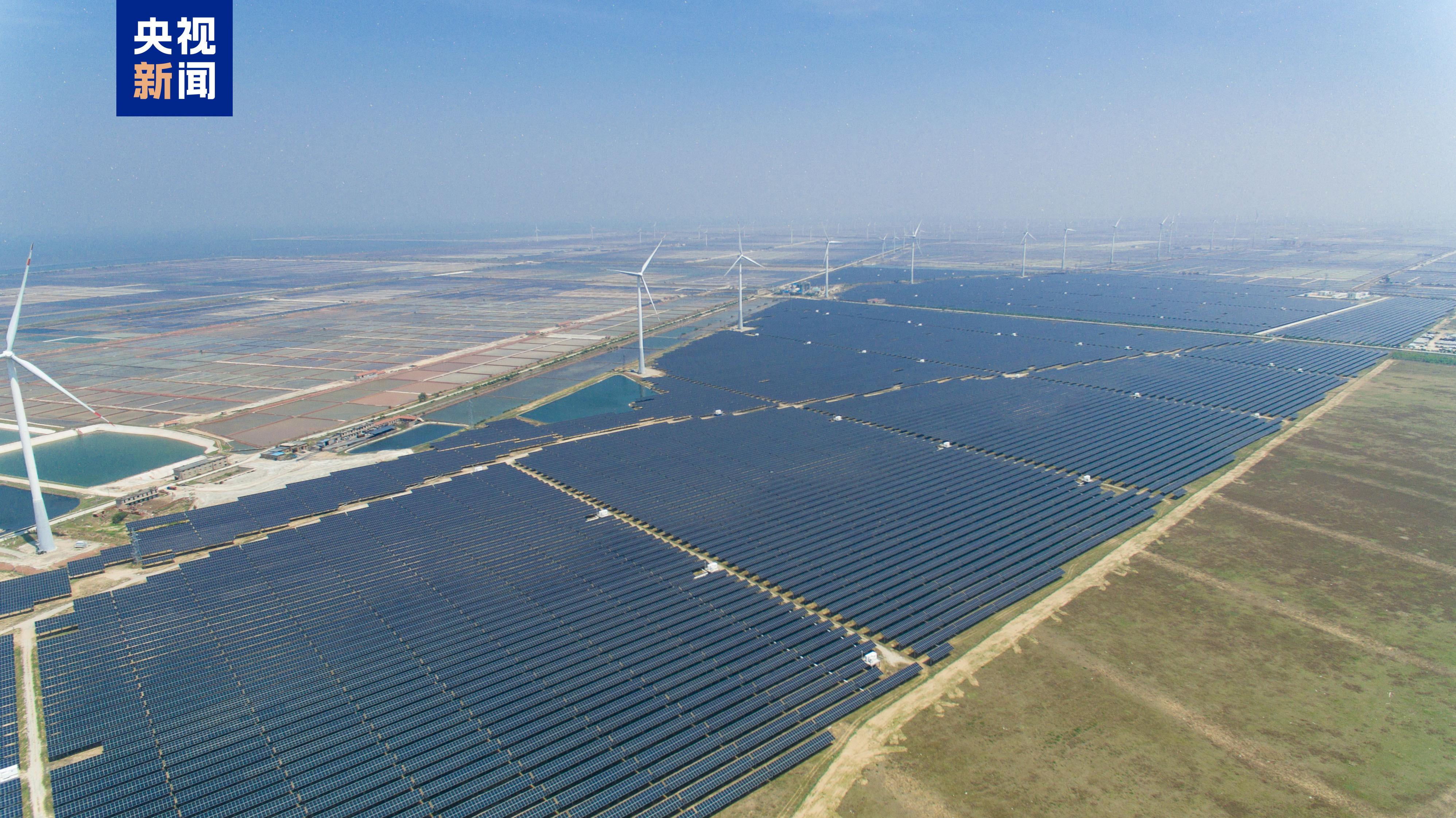 总台央视记者 古峻岭:这里是我国最大滩涂光伏储能电站,整个项目占地面积1.8万亩,总共铺设了近200万块光伏板。全部投产后不仅能源源不断地提供清洁电力,还将在光伏板下灌注卤水,为当地群众产盐增收。
