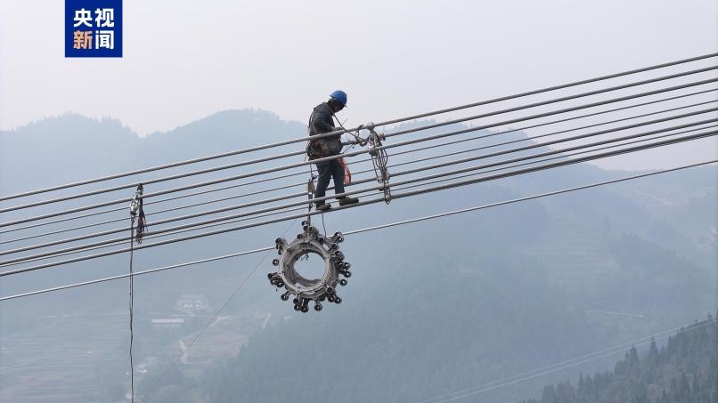 1月8日,随着牵引机最后两根子导线到达R6386号终端塔,“疆电入渝”工程哈密—重庆±800千伏特高压直流输电线路工程(重庆段)最后一场导线展放完毕,自此该工程重庆段全线贯通。
