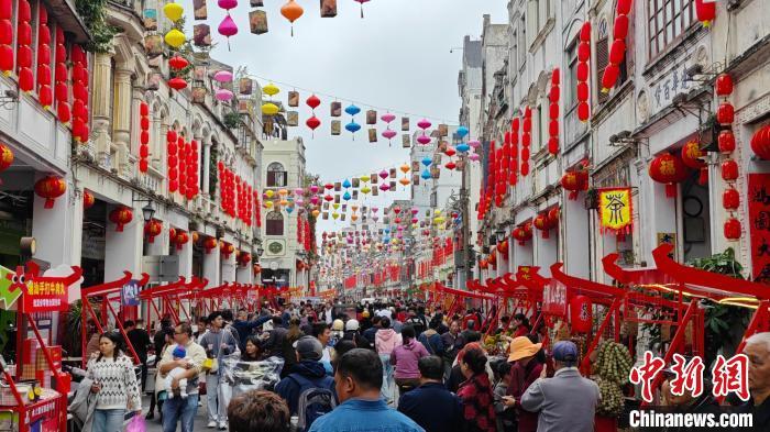 中新网海口1月8日电 1月8日,春节将至,拥有百年历史的海口骑楼老街游人如织,独具南洋风情的建筑群,吸引来自五湖四海的游客前来感受别样的侨乡年味。