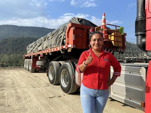 2024年8月17日,在厄瓜多尔通代梅,通代梅货运公司总经理玛丽亚·查查接受新华社记者采访。新华社记者廖思维摄