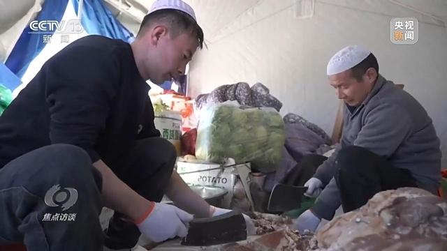 1月9日晚上6点,爱心帐篷里的志愿者开始做晚饭了,香喷喷的饭菜温暖了村民的心。