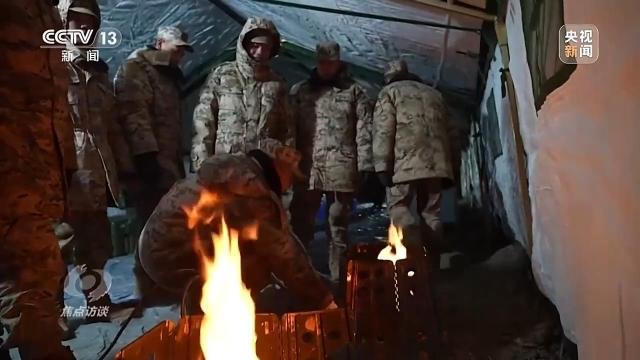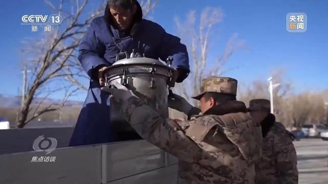 常凯强的任务是备菜,为了尽快完成任务,他接受采访时手里的快刀依然没有停下,而他旁边的00后战士,几个小时内削了300多个土豆。他们配合默契,在备菜完毕后十分钟内,美味的菜食就出锅了。官兵们共同抬着保温桶再次出发,他们的任务是要趁热把食物送到3公里外的嘎旦村。