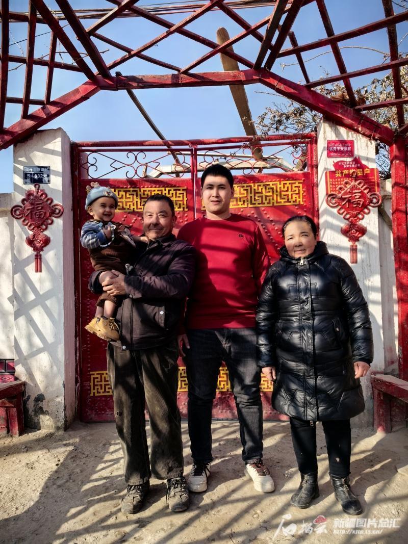 2024年12月31日,图如普·麦麦提图尔荪一家在院门口合影留念。石榴云/新疆日报记者 肖春飞摄