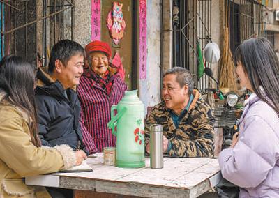四川省自贡市沿滩区邓关街道盐业社区干部听取群众对老旧小区改造的意见建议。记者 宋豪新摄