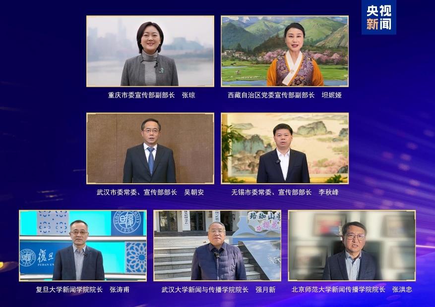 重庆、西藏、湖北武汉、江苏无锡等地宣传部门领导,以及来自复旦大学、武汉大学、北京师范大学新闻传播领域的专家学者通过视频寄语参赛选手坚定热爱、追求卓越,讲好中国故事,传播好中国声音,展现新时代新闻人的风采。