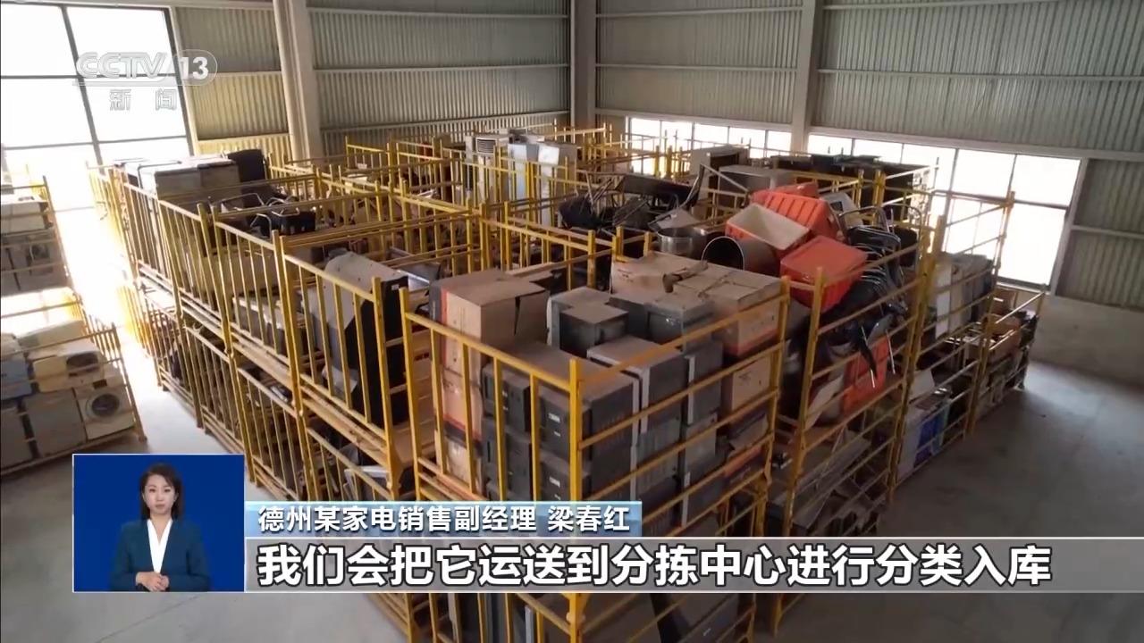 德州某家电销售副经理 梁春红:相关旧家电的信息录入到大数据平台,这些旧家电,我们会把它运送到分拣中心进行分类入库,等待送往下游拆解。