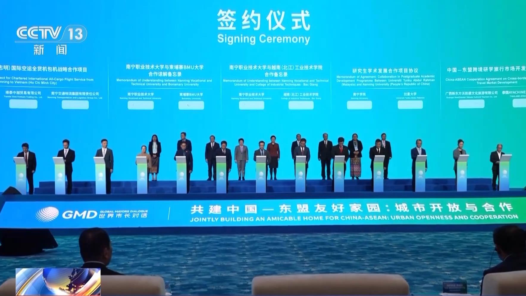 据悉,主活动现场共达成签约项目14个,涉及缅甸、柬埔寨、菲律宾、马来西亚、泰国、越南、老挝、新加坡等东盟国家,交流合作范围包括友好城市、经贸、物流运输、教育、旅游等,对外合作投资超33亿元。