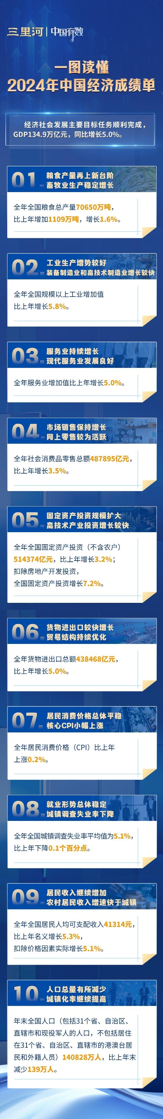 2024年中国经济年报出炉,GDP突破134万亿元,同比增长5%,顺利实现预期目标。