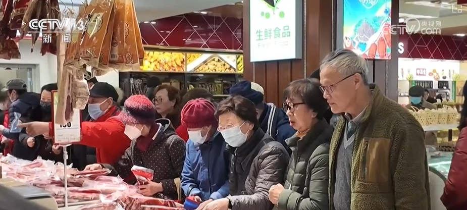 春节临近,年货市场购销两旺。商业街上的老字号、食品商店里人流攒动,鲜花、鱼市也出现客流增长。大家选购自己心仪的商品,迎春节、添喜庆。