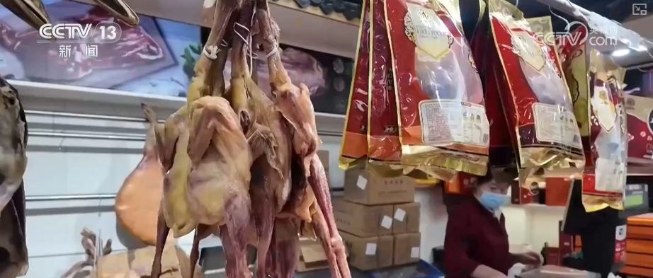在上海南京路步行街上的食品一店,人头攒动、热闹非凡。柜台师傅们介绍,最近生意兴旺,腊鸡腿和香肠的销量一天下来都能达到2000斤左右。