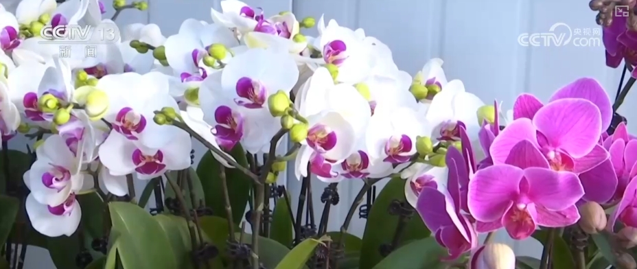 寓意美满幸福的蝴蝶兰、寓意“红”运当头的红掌、寓意生命力的冬青等数十个品种的花卉竞相绽放、花香四溢。