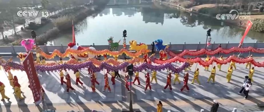 除了这些灵动的表演,巡游的队伍还包括当地的各类非遗项目代表、文艺协会代表等,他们会一起热热闹闹地走过广场前的桥,一路到达当地的龙翔广场,和那里的观众进行互动。巡游的队伍非常长,据了解共有千人左右,沿途吸引不少市民驻足观看。