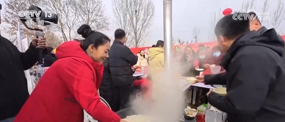 为了增加大集上的年味,当地还组织了“手造+非遗”展示展销区、“农产品展销+电商直播”带货区、特色美食体验区等展区。