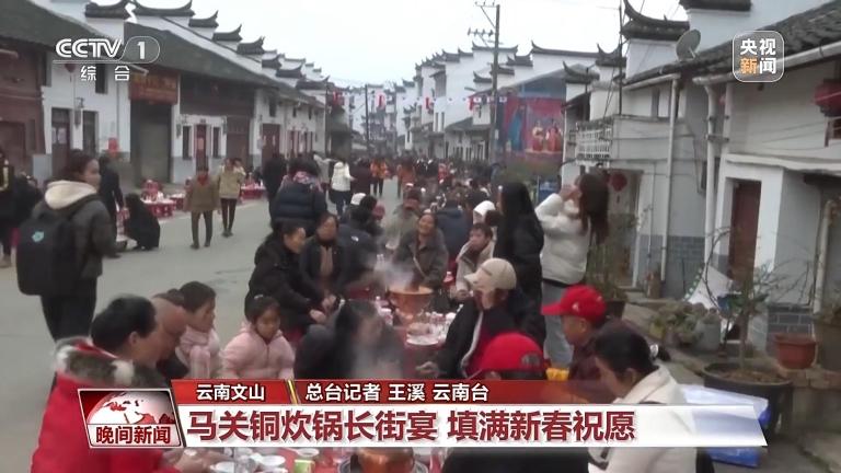 云南文山:马关铜炊锅长街宴 新春祝愿填满锅
