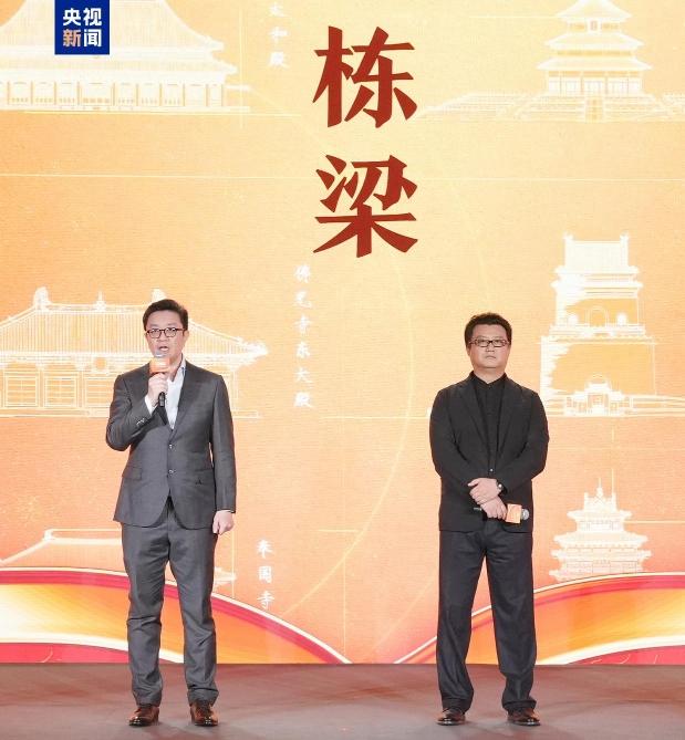 △中央美术学院教授、建筑学院副院长崔冬晖,天津大学教授、建筑学院常务副院长张昕楠推介中国传统建筑创演秀《栋梁》